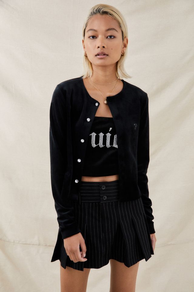 Buy Juicy Couture Womens Black Cardigans. This button through cardigan features tonal embroidered Juicy Couture branding. Fitted round neck cardigan in a cream ribbed cotton velour.